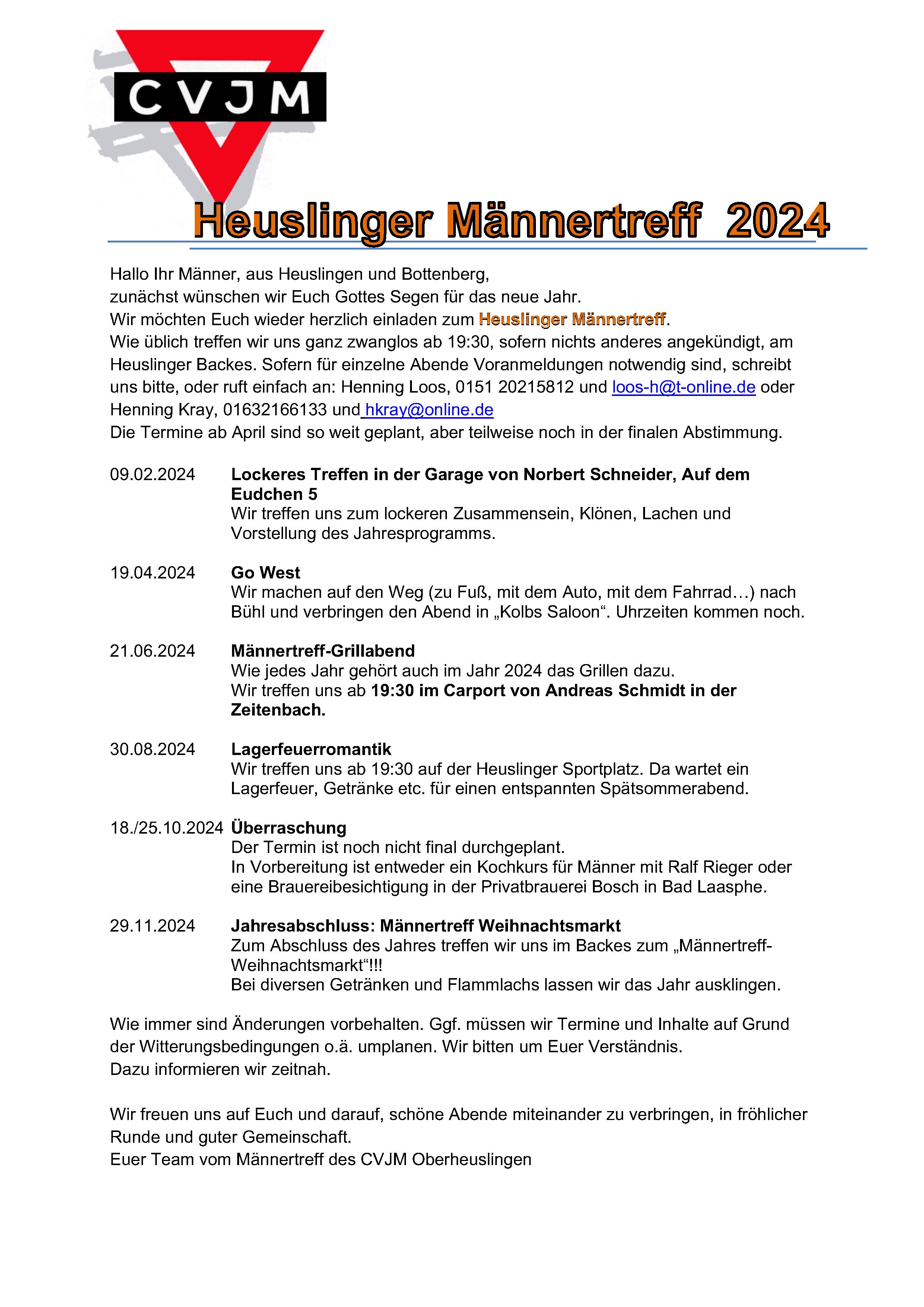 Zu den weiteren Terminen werden wir noch einmal rechtzeitig einladen.