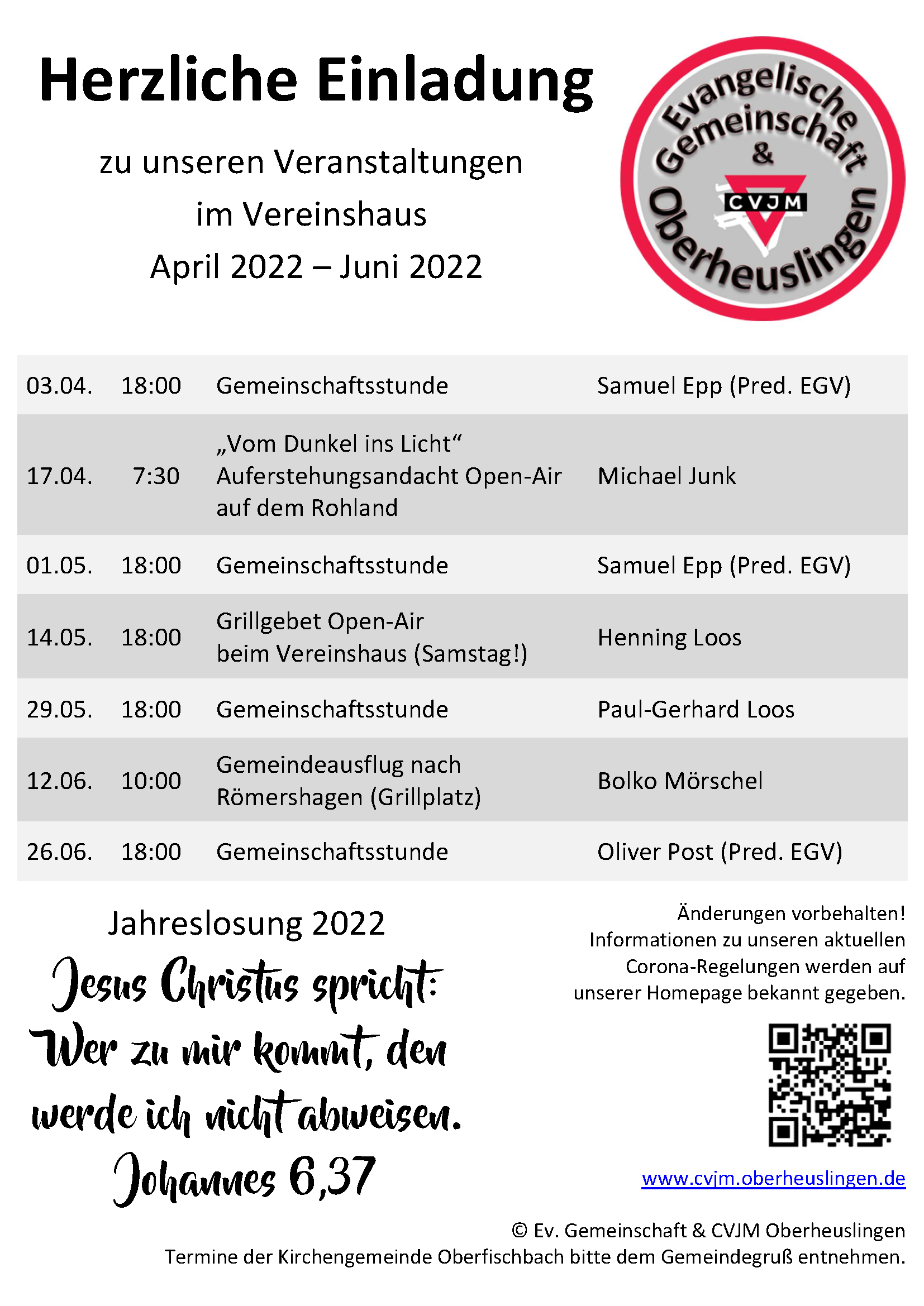 2022 Q1 Termine HPHerzliche Einladung zu unseren Veranstaltungen im Vereinshaus für April bis Juni 2022.