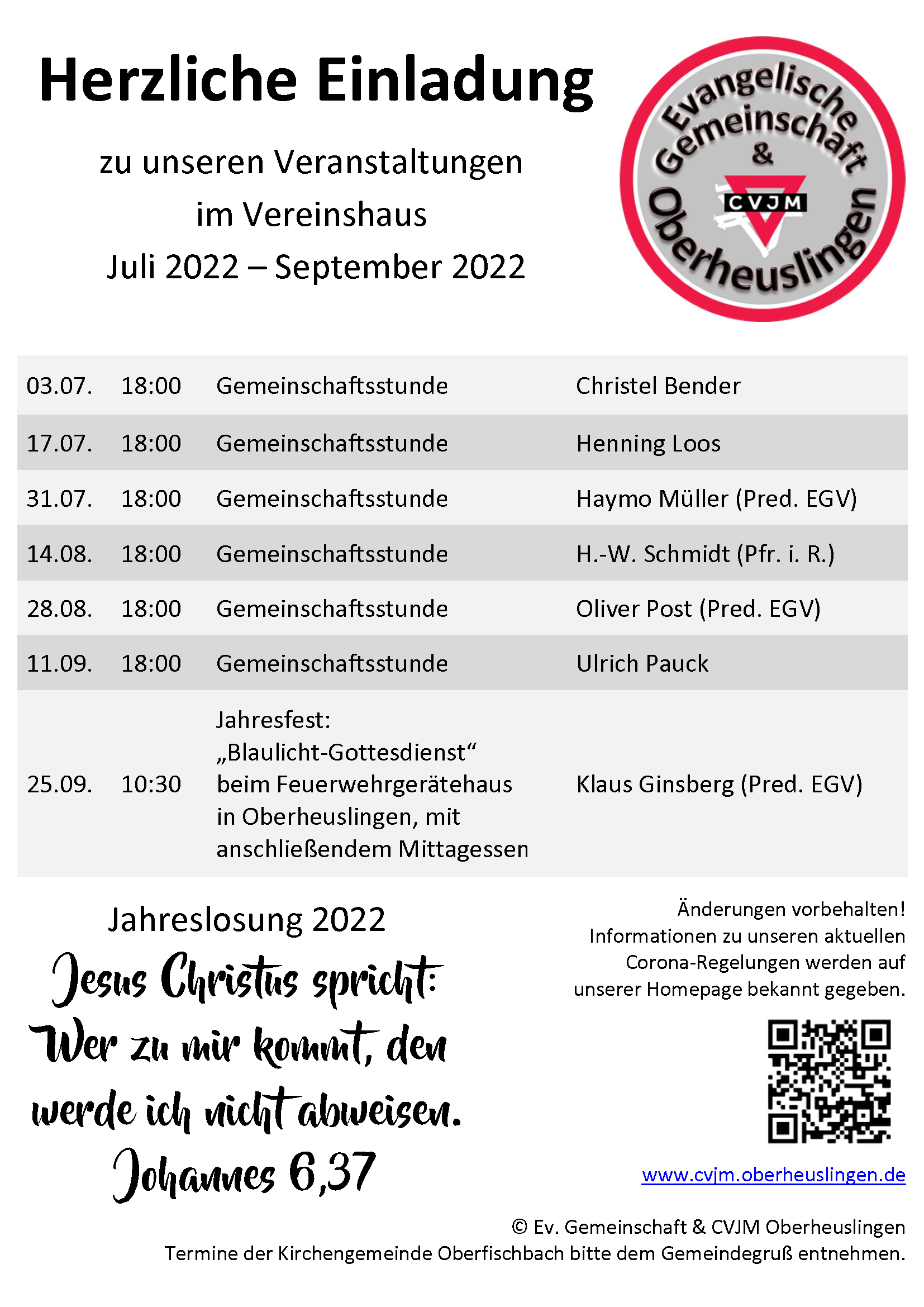 Herzliche Einladung zu unseren Veranstaltungen im Vereinshaus für Juli bis September 2022.