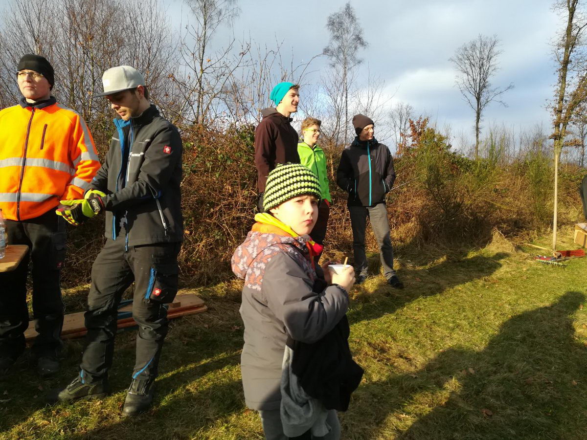 Einsammeln der Weihnachtsbäume im Dorf und Verbrennen auf dem Rohland